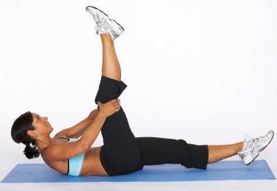 Обратите внимание: при выполнении данного упражнения важно избегать прогиба в поясничном отделе. Теперь немного приподнимите таз и подтяните к груди одно колено. Нужно сделать два-три подхода по 20-30 повторений