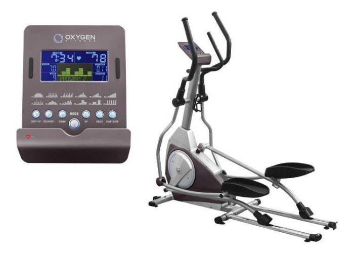 - Эллиптический тренажер oxygen. Модель подходит для женщин с целью укрепления мышц. Регулируется положение педалей, есть восемь уровней нагрузки. Из отрицательных моментов — небольшая длина шага (всего 33 см).