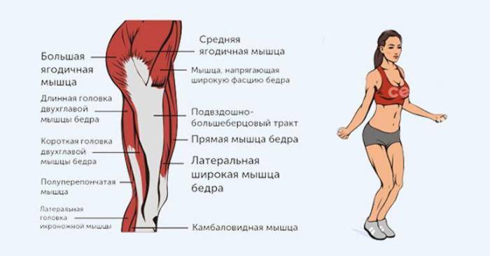 Для достижения хороших результатов нужно не только освоить правильную технику прыжка с места, но и обладать физическими показателями. Основной акцент идет на ноги – именно от их силы и гибкости зависит длина прыжка. Но мышцы пресса, груди и рук также важны для выполнения упражнения.