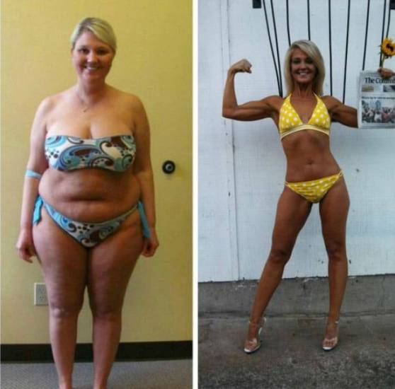 Надо избавляться не от ВЕСА, а от ЖИРА. Это разные вещи. Слева – потеря веса, справа – потеря жира:
