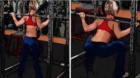 Да, да та самая проблемная женская зона! По скольку вы находитесь в тренажере Смита, то он снимает часть нагрузки, еще он не дает потерять равновесие. В таком случае вы сможете максимально низко опуститься, наклонить корпус и тем самым в работу будут задействованы наши ягодичные мышцы.